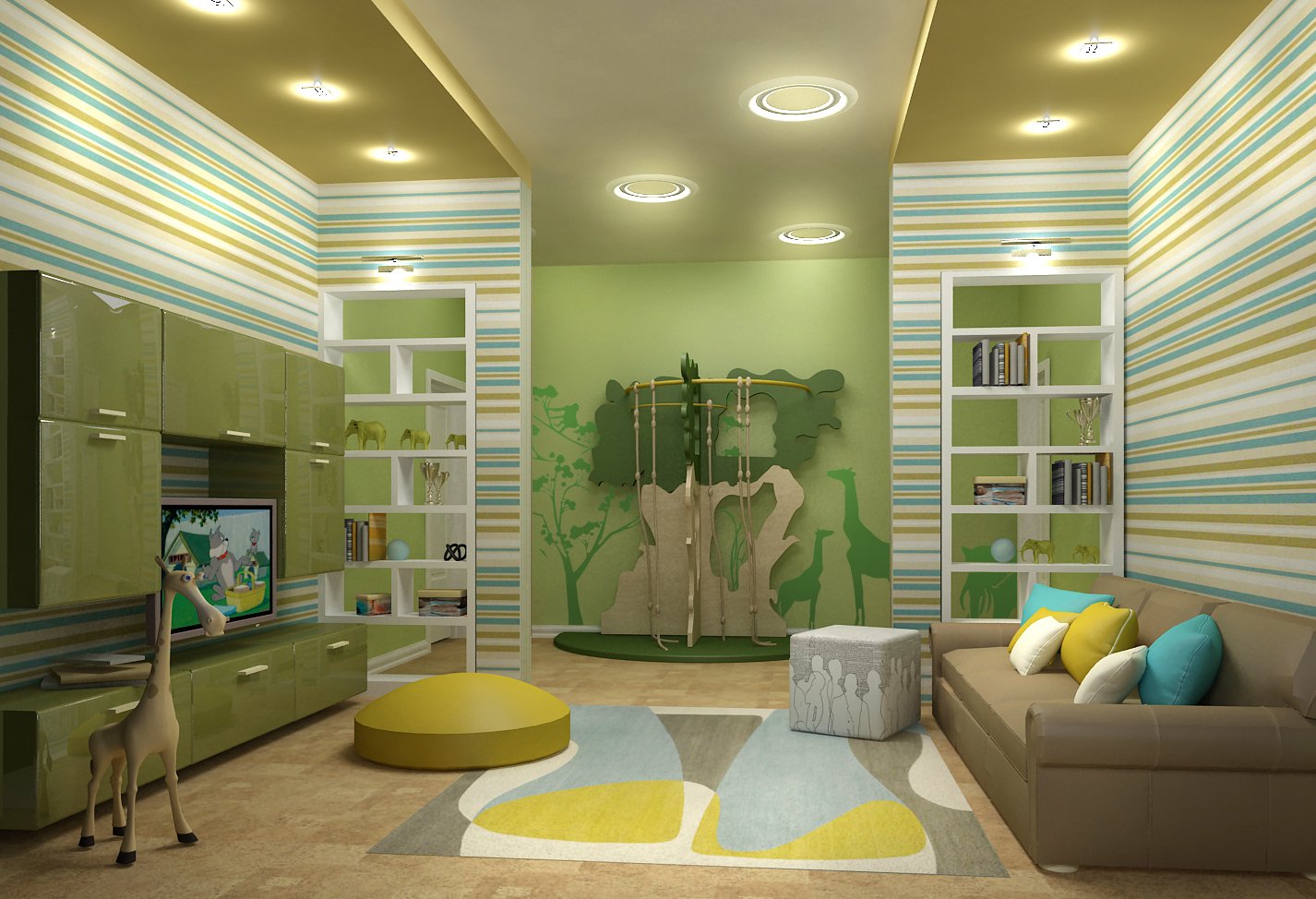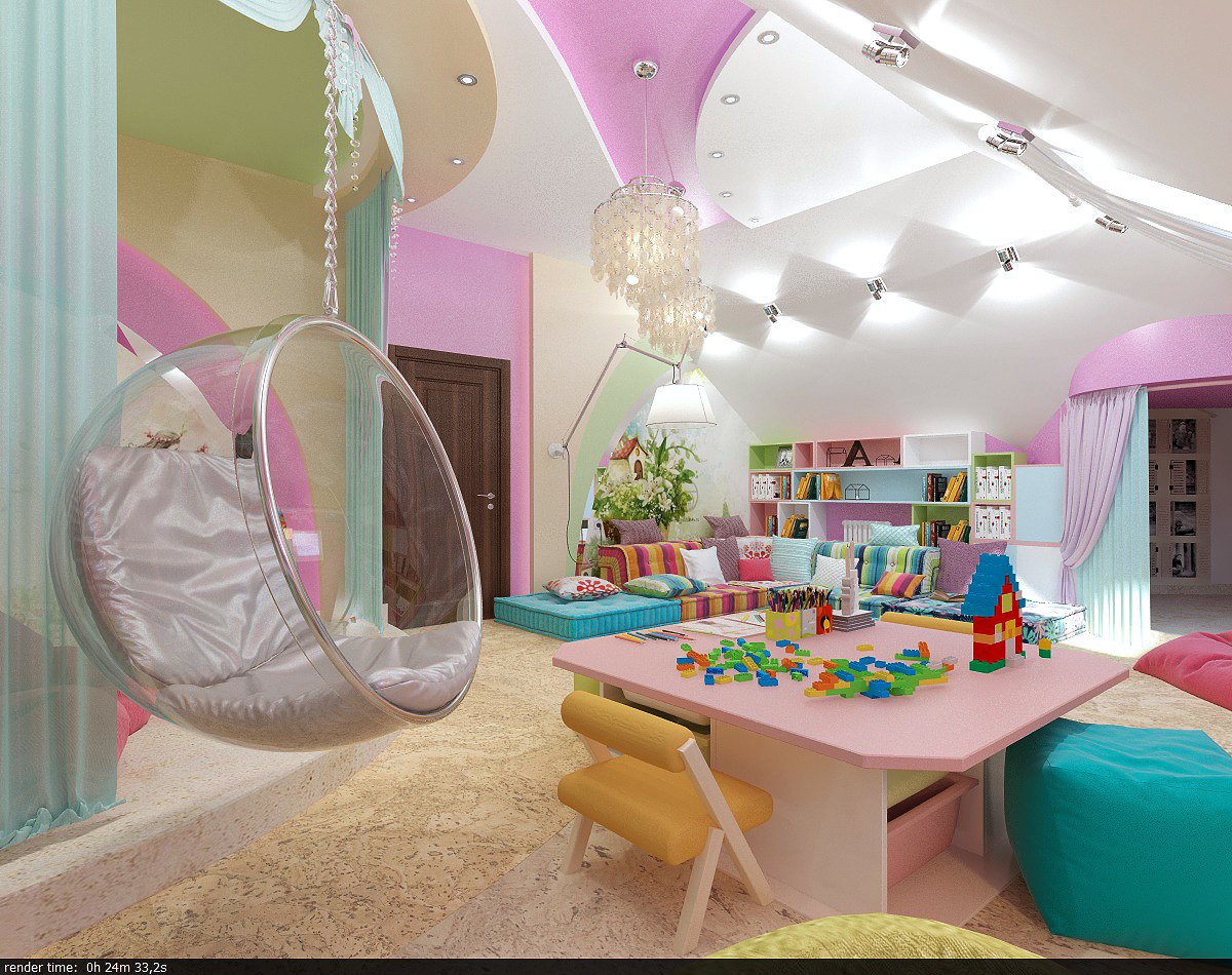 Ci-dessous, vous pouvez voir des photos d'exemples de design d'intérieur intéressants dans une salle de jeux pour enfants.