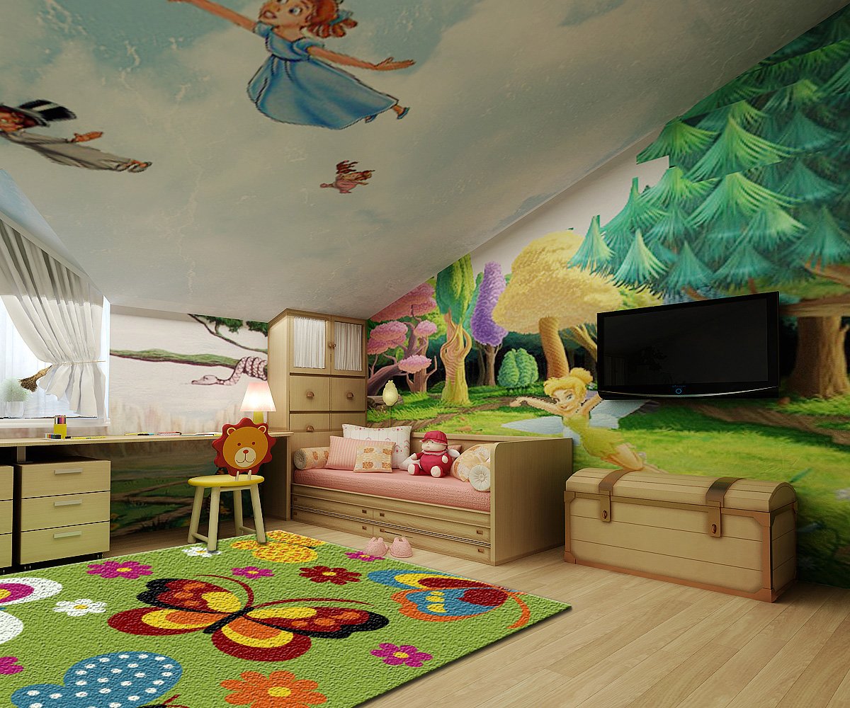Quand il s'agit de décorer les murs de la salle de jeux, cela doit être fait avec beaucoup de compétence. Il n'est pas nécessaire d'appliquer de vrais dessins à la surface des murs. Vous pouvez toujours trouver une alternative. Par exemple, l'utilisation d'images autocollantes modernes, de haute qualité et présentées dans un grand nombre de parcelles d'art différentes. Vous pouvez également utiliser de la peinture ou du papier peint pour les murs de la salle de jeux.