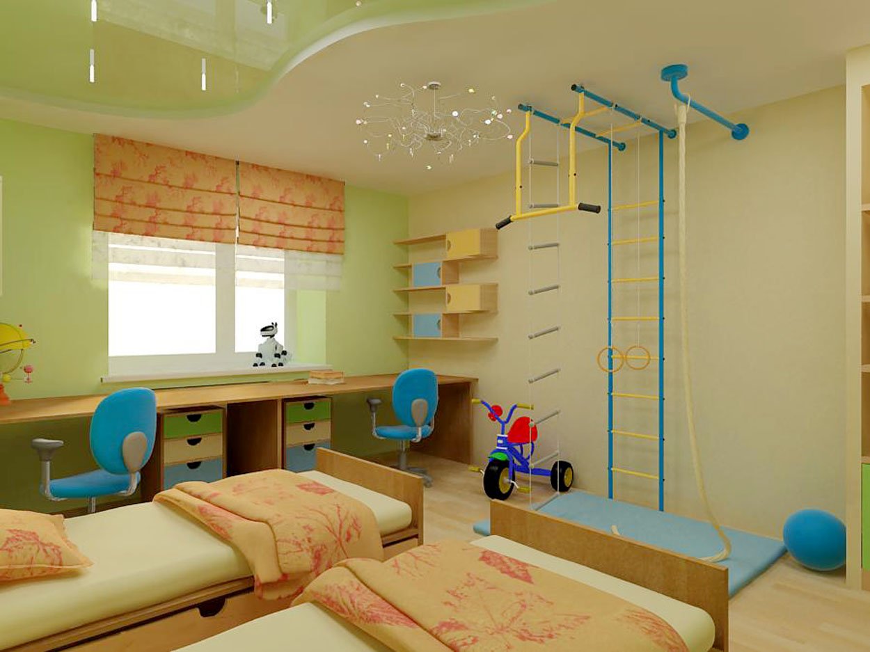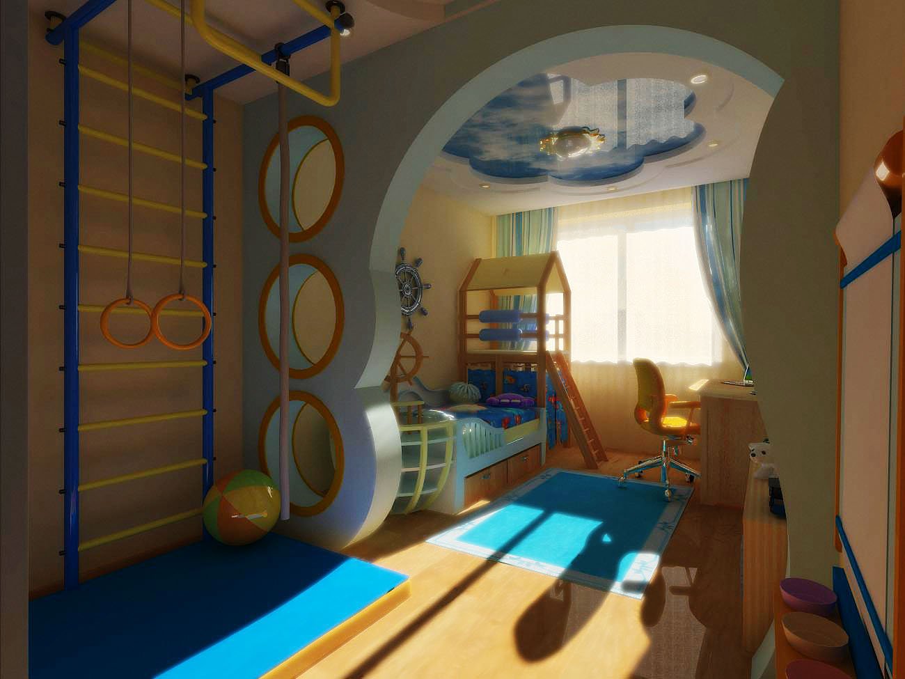 - Zone sportive. Dans cette partie, vous pouvez mettre quelques simulateurs élémentaires, un mur suédois ou des équipements sportifs.
