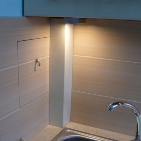 Pour masquer le pipeline avec des rails de toit, qui pourront accueillir toutes sortes d'ustensiles de cuisine - une excellente idée s'il fonctionne horizontalement.