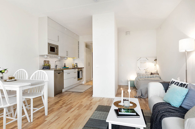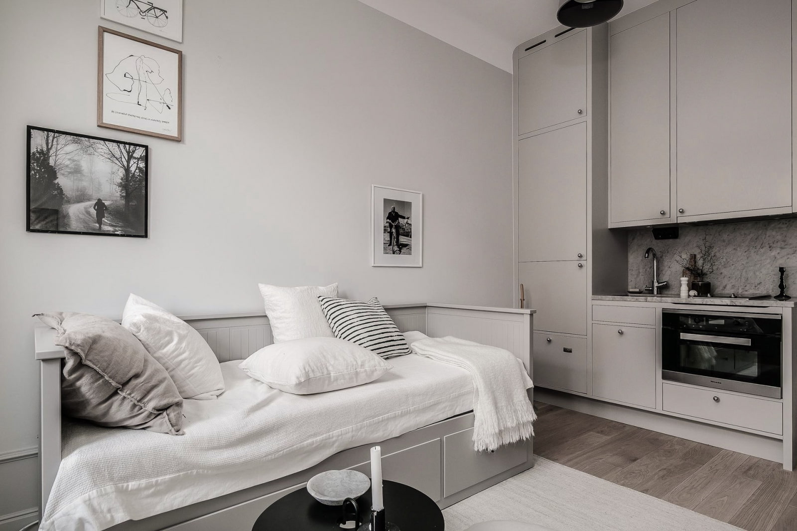 Un minimum de mobilier, un maximum d'espace - les caractéristiques d'un intérieur minimaliste, idéal pour un petit studio