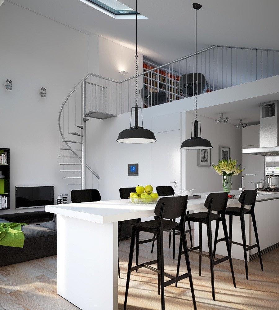 Le style loft avec mezzanine est lorsque l'espace vertical est utilisé au maximum sous la forme de solutions intérieures à plusieurs niveaux, autorisées uniquement dans les pièces avec de hauts plafonds.
