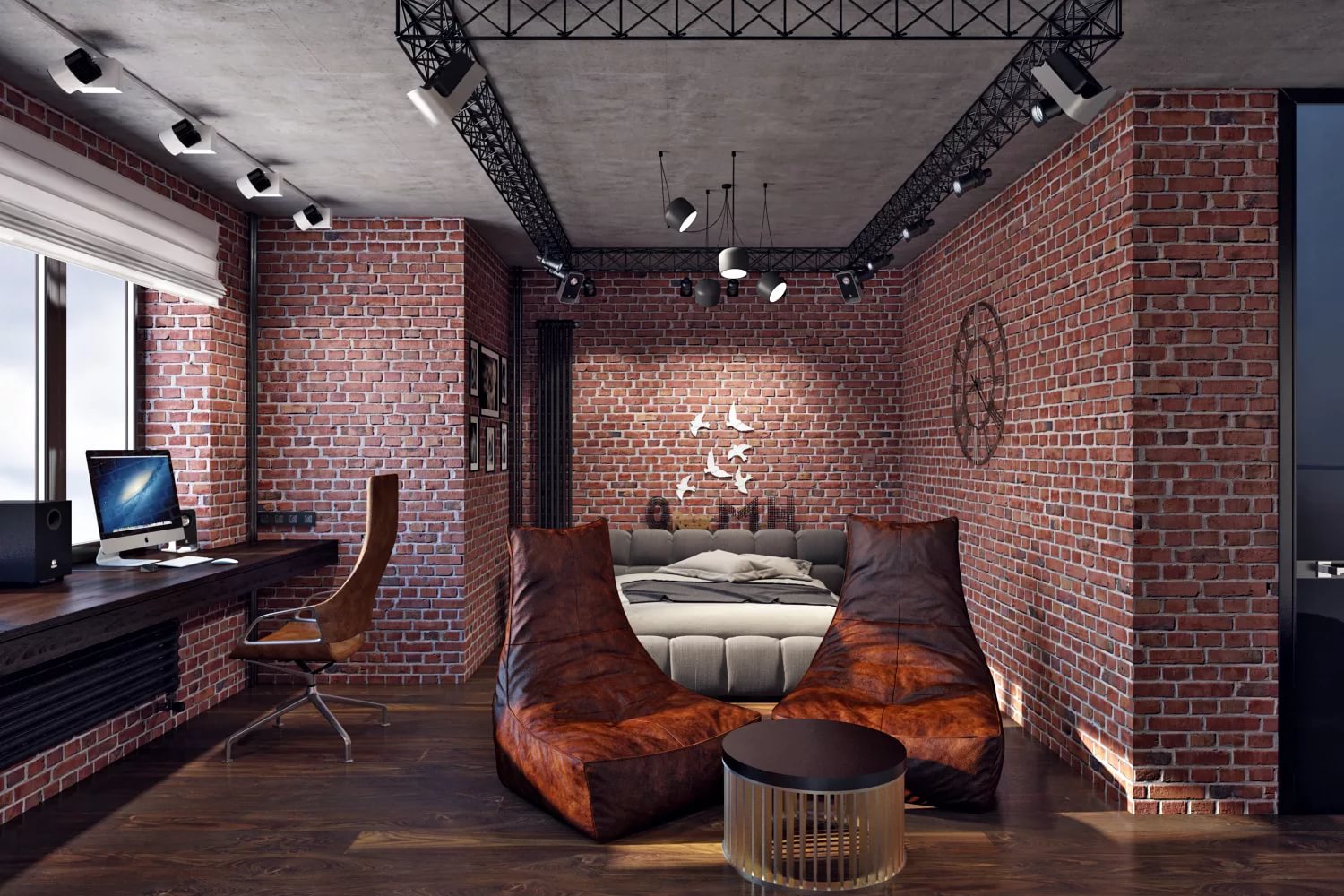 Loft - un style pour des personnalités créatives extraordinaires. Cela implique la simplicité et la négligence dans la décoration des murs qui sont mis en évidence - ce sont des murs en brique et non plâtrés avec une texture rugueuse. Le style utilise une quantité minimale de meubles, ce qui est très approprié pour le studio.