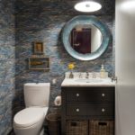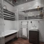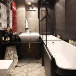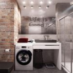 Lors de la création d'un intérieur dans une salle de bain, les éléments de décoration de style loft doivent être pris au minimum, ce qui reflète bien la photo de ce design. Mais priver complètement d'embellissement est également une mauvaise option. Vous devez adhérer au juste milieu, en vous appuyant sur vos sentiments d'opportunité et de fonctionnalité.