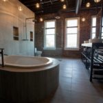 La salle de bain de style loft est parfaite sur une grande surface. La tâche la plus importante est de maintenir le style de la pièce, qui était auparavant industrielle, et de combiner des formes simples avec le coût élevé du traitement et des éléments intérieurs utilisés.