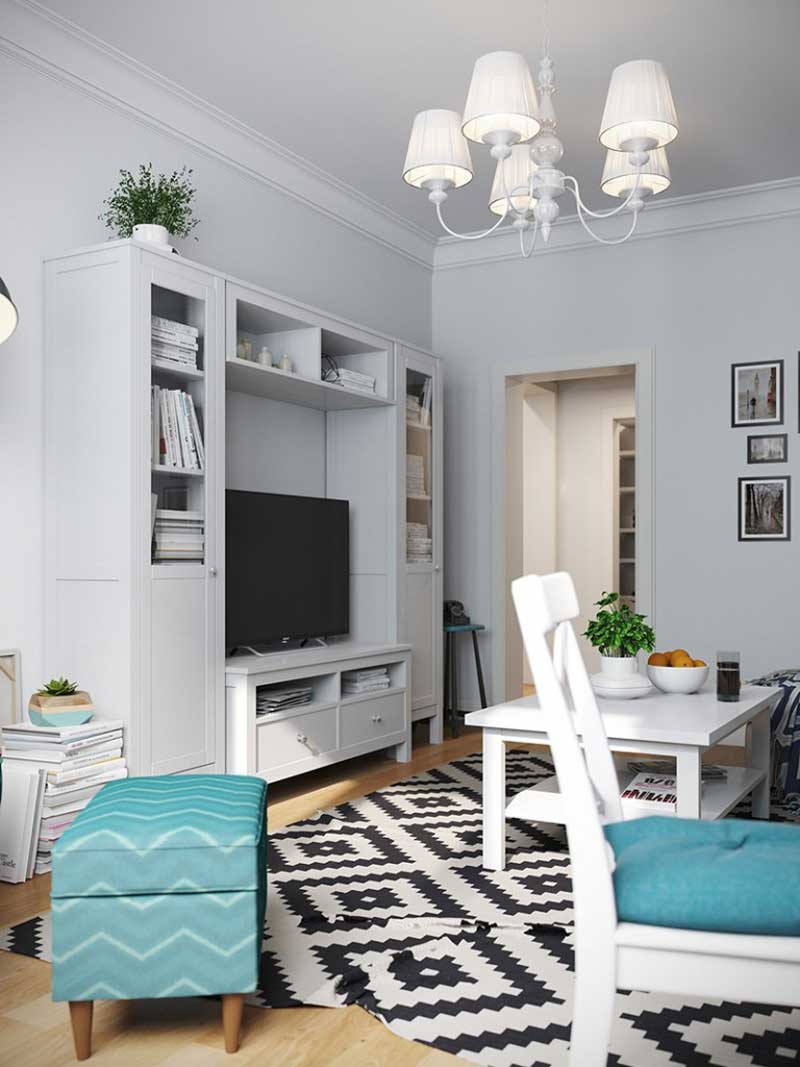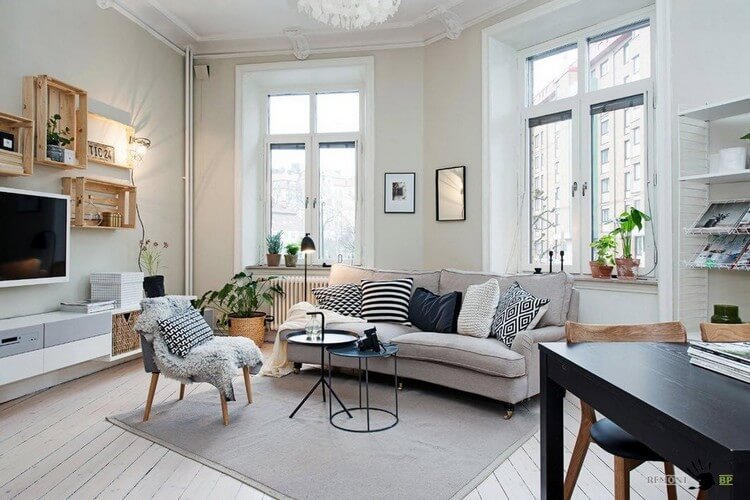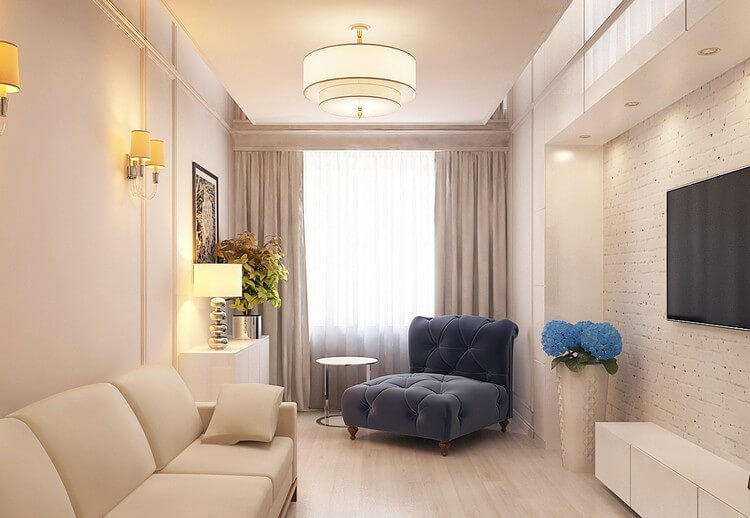 แต่ถึงแม้ว่าห้องจะมีขนาดเล็กและหน้าต่างก็ไม่ได้มองไปที่ด้านที่มีแดดคุณยังสามารถสร้างความสะดวกสบายด้วยโคมไฟ นอกจากนี้โคมไฟตั้งพื้นและโคมไฟตั้งโต๊ะที่สวยงามสำหรับการตกแต่งภายในของห้องนั่งเล่นที่ทันสมัยนั้นไม่สามารถถูกแทนที่ได้อย่างง่ายดาย ท้ายที่สุดพวกเขาเป็นส่วนหนึ่งของการตกแต่งและเน้นความเป็นเอกลักษณ์ของการตกแต่งภายใน!