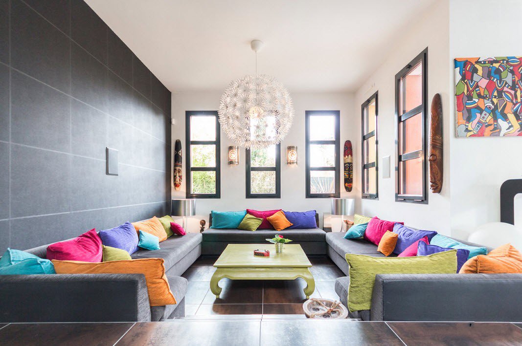 ทางเลือกของสีสำหรับการตกแต่งภายในขึ้นอยู่กับขนาดของห้องจำนวนและขนาดของหน้าต่างรวมถึงตำแหน่งของห้องนั่งเล่นที่สัมพันธ์กับจุดสำคัญ