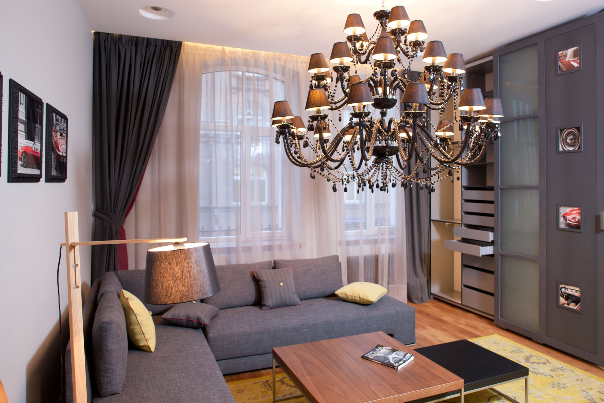 การใช้โคมระย้าแบบอสมมาตรควรมีสาเหตุมาจากความเรียบง่ายในการตกแต่งภายในเช่นสไตล์มินิมอลลิสต์ นอกจากนี้ยังเป็นไปได้ที่จะแนะนำองค์ประกอบดังกล่าวเป็นสไตล์โดยเน้นรูปทรงเรขาคณิตแล้วสิ่งนี้จะดูมีความเกี่ยวข้องมาก