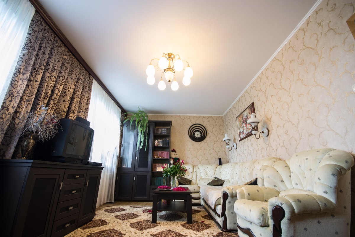 ยังให้ความสนใจกับจานสีขององค์ประกอบเฟอร์นิเจอร์ทั้งหมดที่อยู่ในพื้นที่ของคุณ การพิมพ์บนเพดานไม่ควรดูซับซ้อนเกินไปและ "แยก" ออกจากโครงสร้างทั่วไป