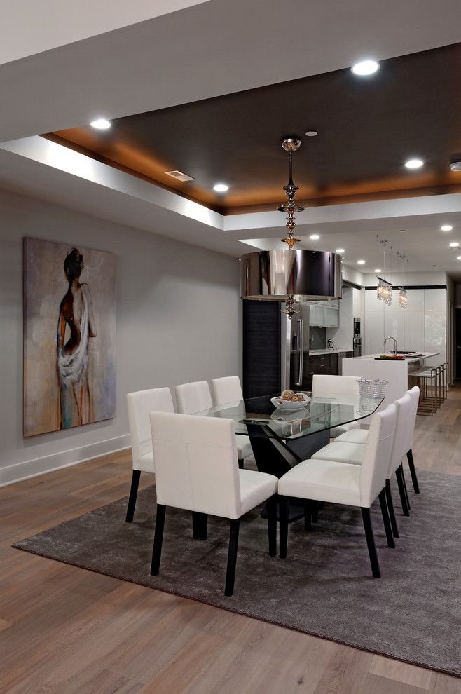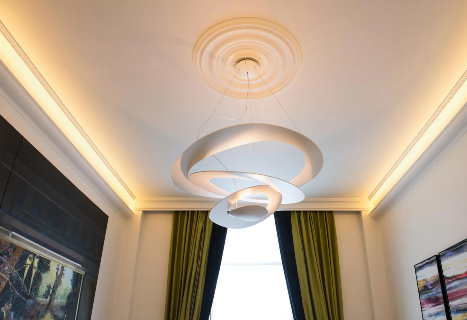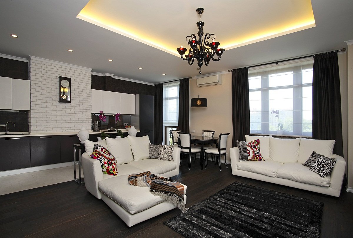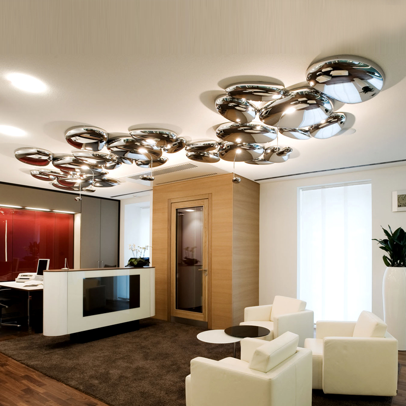 - การรวมกันของการวางโคมระย้าในศูนย์เช่นเดียวกับการวางองค์ประกอบแสงอื่น ๆ รอบปริมณฑลของเพดาน;