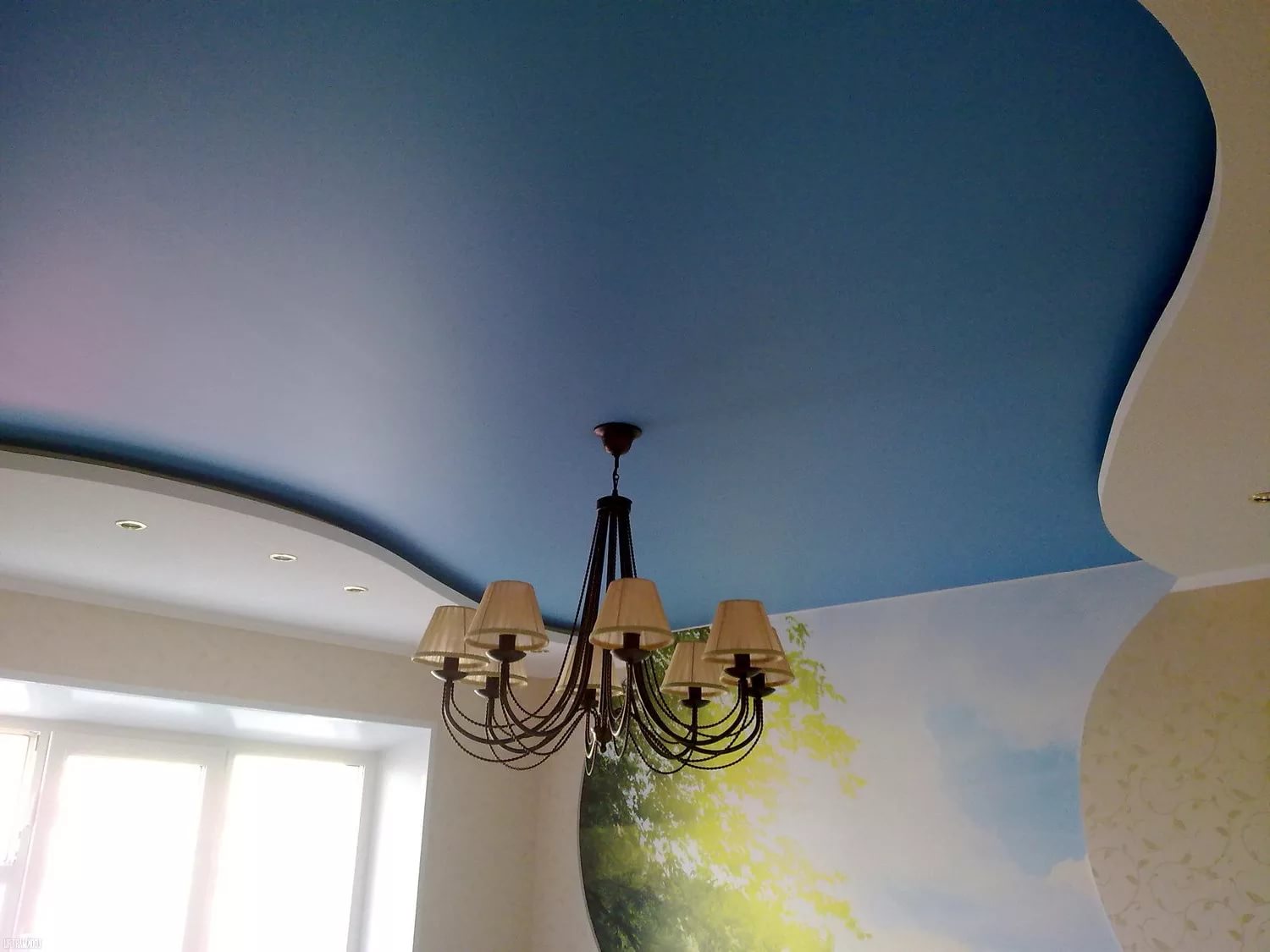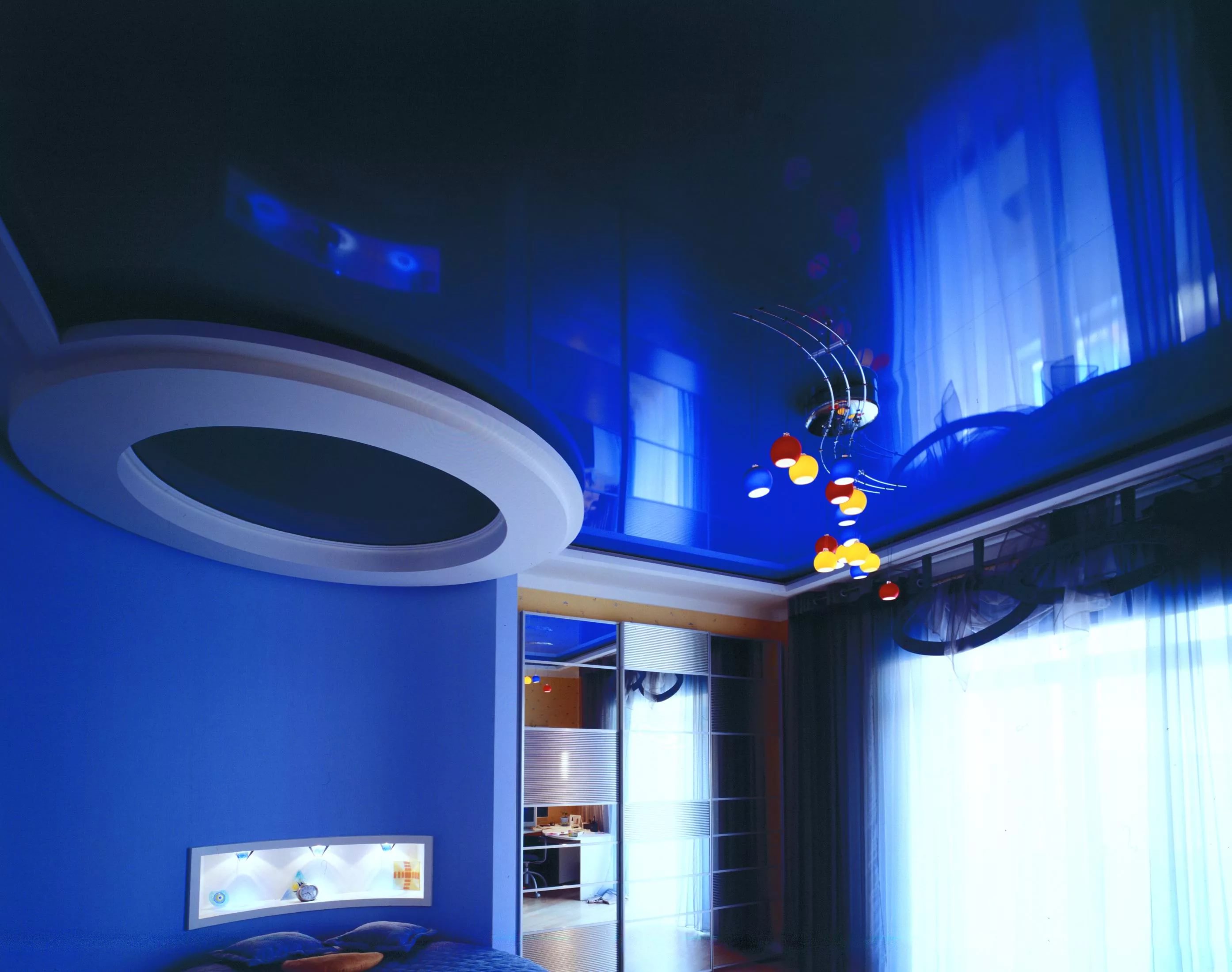กับพื้นหลังของเพดานยืดแสง, โคมไฟของสีตัดกันดูดี