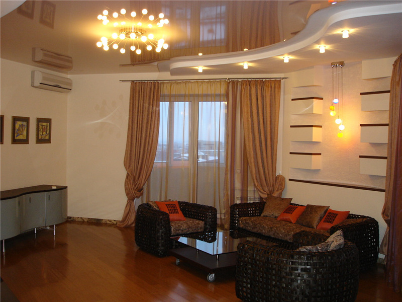 เพดานยืดที่มีองค์ประกอบแสงควรอยู่ในความสามัคคีทั้งในสีและพื้นผิว นอกจากนี้ยังเป็นไปได้ที่จะพิมพ์บนเพดานยืดในกรณีนี้ตัวเลขควรสอดคล้อง