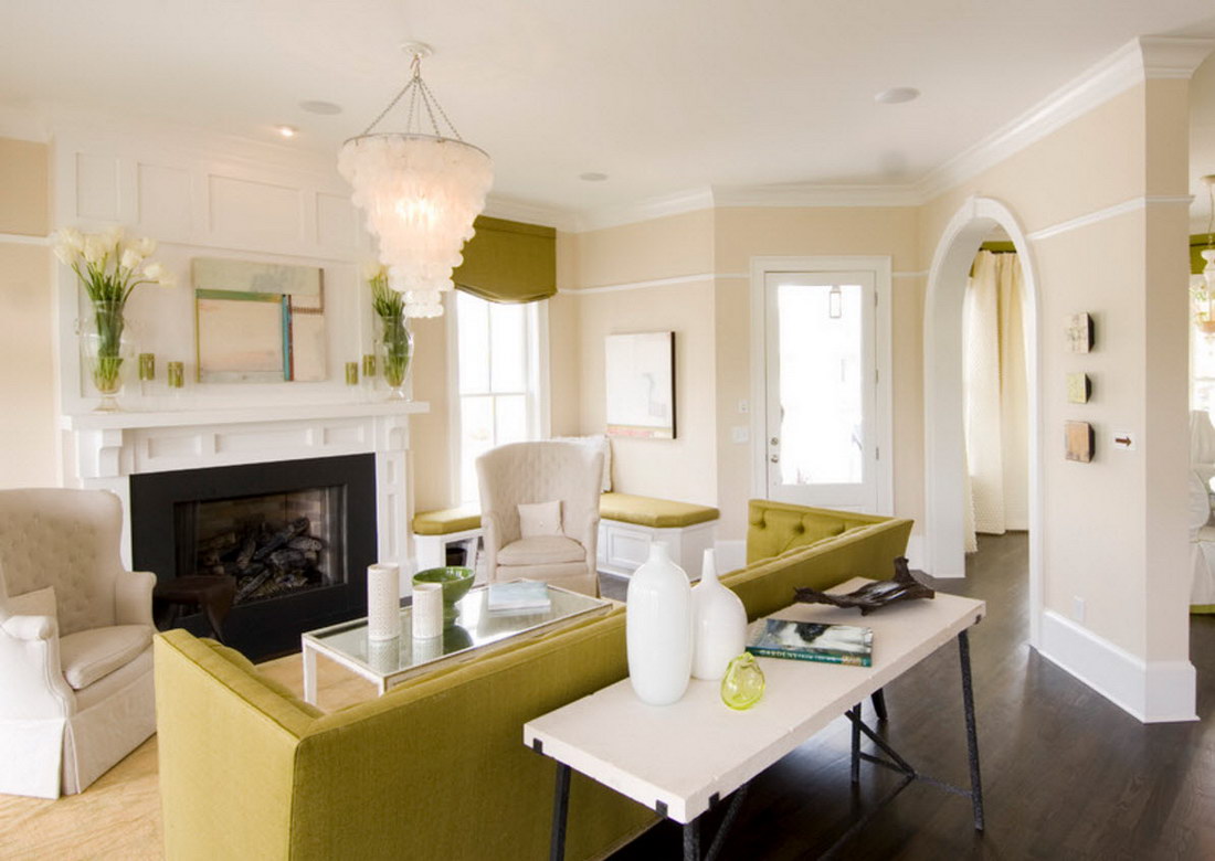 - ในห้องนั่งเล่นทำด้วยสีเบจควรซื้อเฟอร์นิเจอร์ในสีเขียวอ่อนหรือสีมะกอก