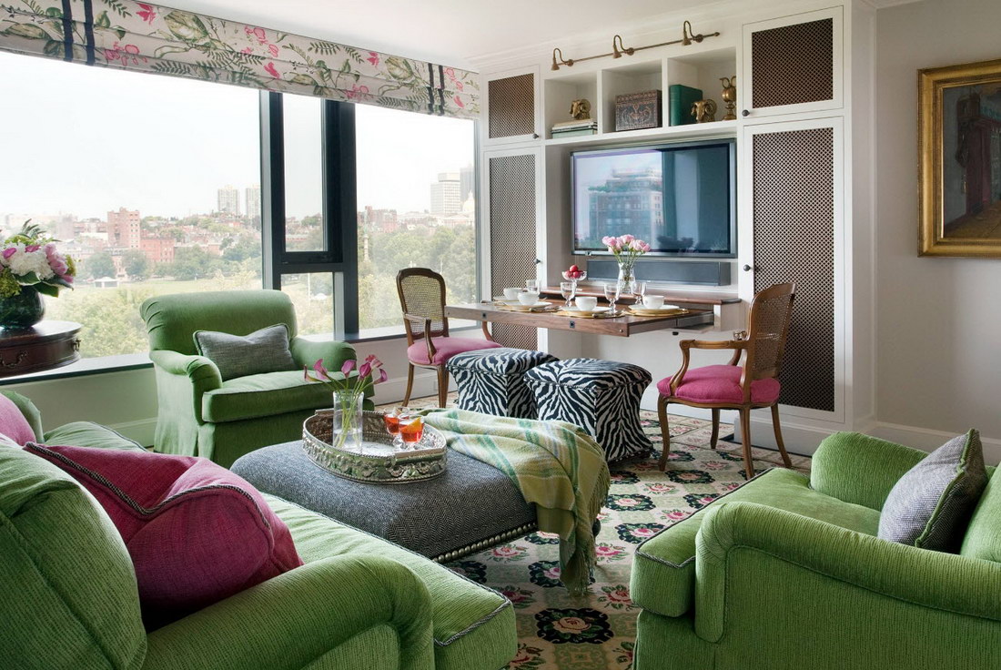 เฟอร์นิเจอร์ตกแต่งในสีเขียวมีลักษณะที่ค่อนข้างสงบและกลมกลืนซึ่งมันเป็นเรื่องง่ายที่จะสร้างการออกแบบที่น่ารื่นรมย์ของห้อง