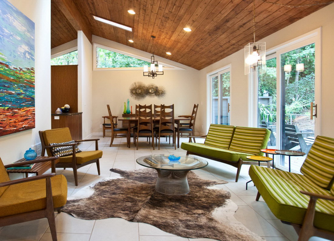 การผสมผสานชาติพันธุ์สีเหลืองสีเขียวสดใสในห้องนั่งเล่น