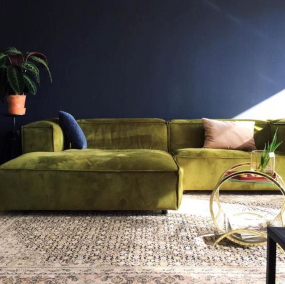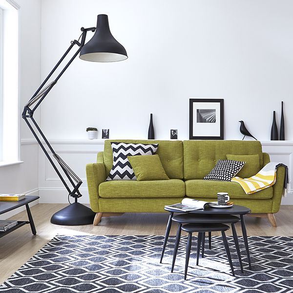โซฟาสีเขียวมีลักษณะเป็นอย่างไรภายในห้องนั่งเล่นภาพด้านล่าง: