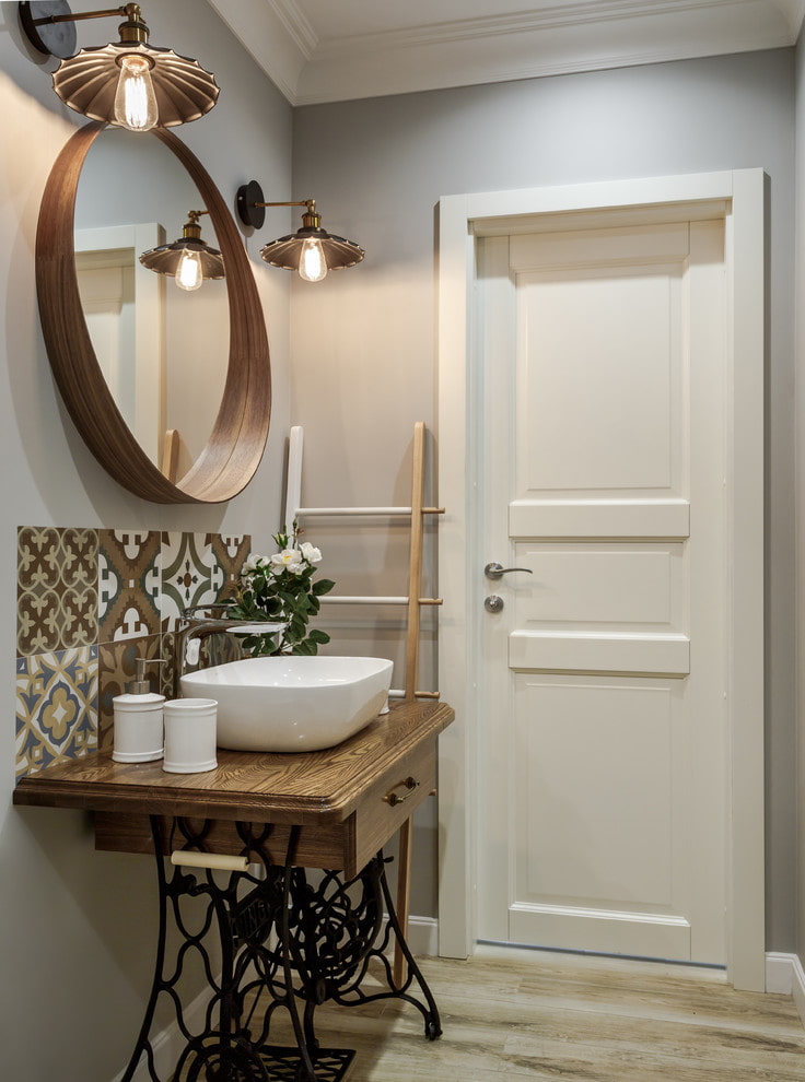 - หากห้องน้ำมีรายละเอียดประตูที่สว่างสดใสก็จะถูกตกแต่งด้วยภาพดอกไม้ ภาพดังกล่าวจะทำให้ประตูเป็นส่วนหนึ่งของการตกแต่งภายใน