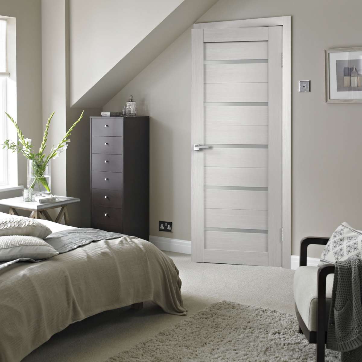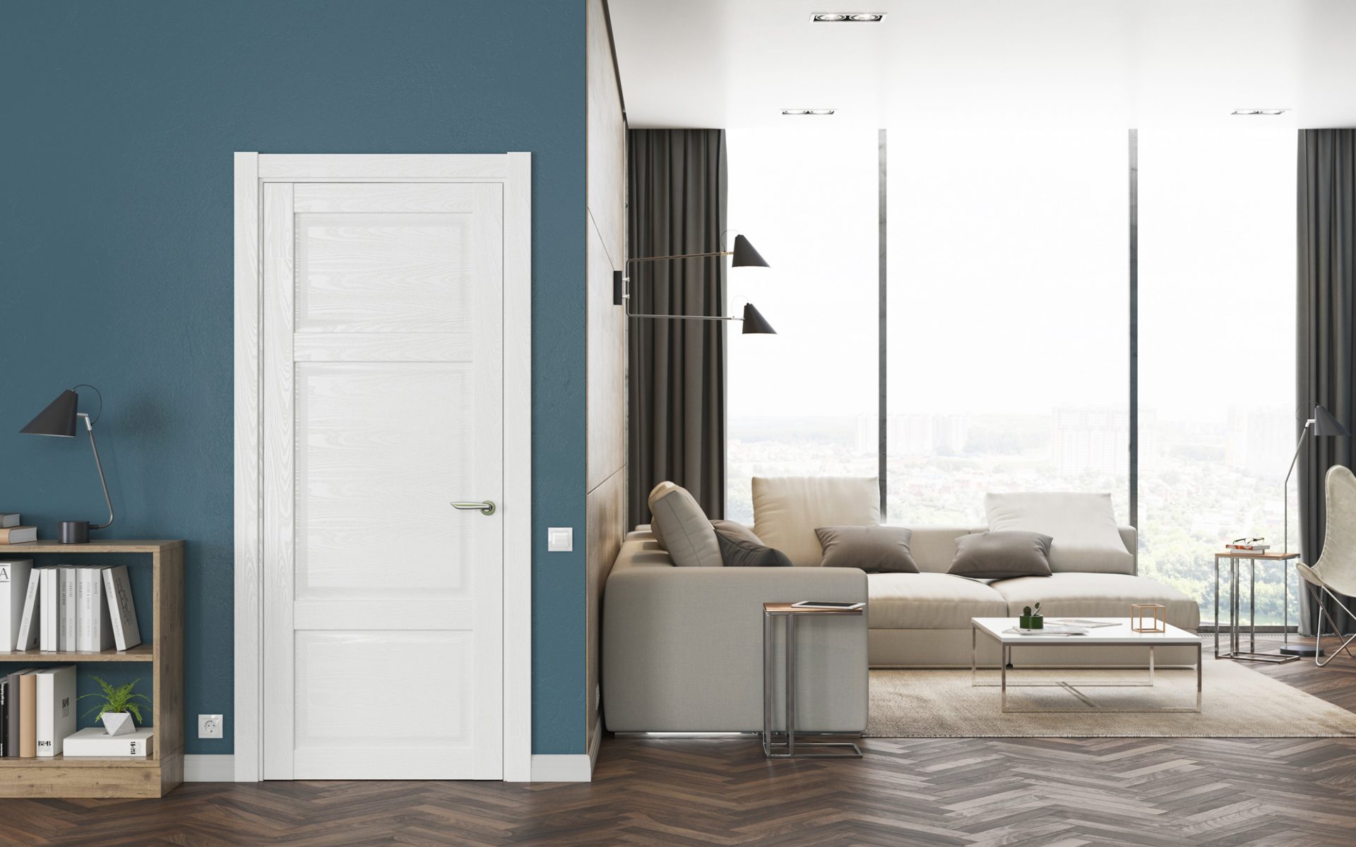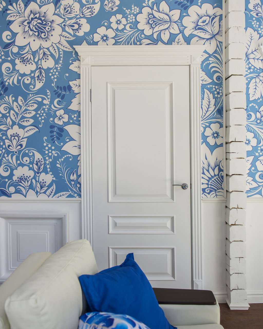 ประตูสีขาวจะช่วยเสริมการออกแบบของห้องอย่างลงตัวและเน้นเสียงบางอย่าง