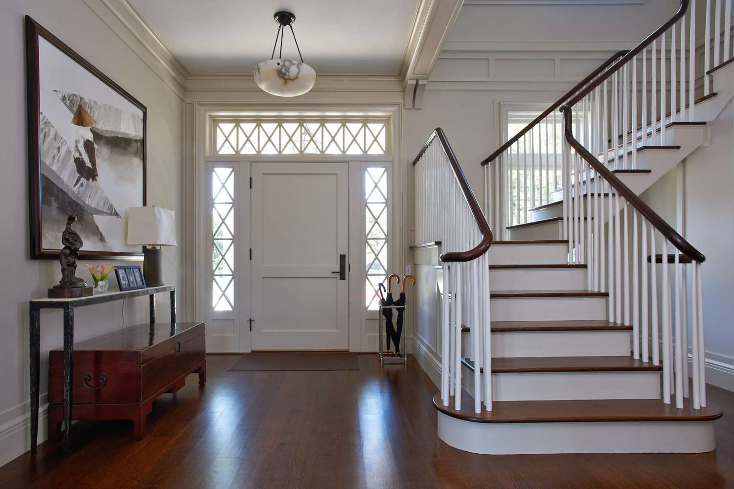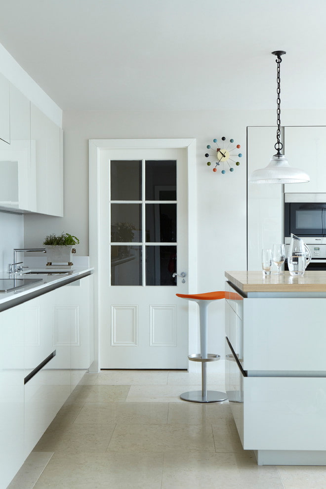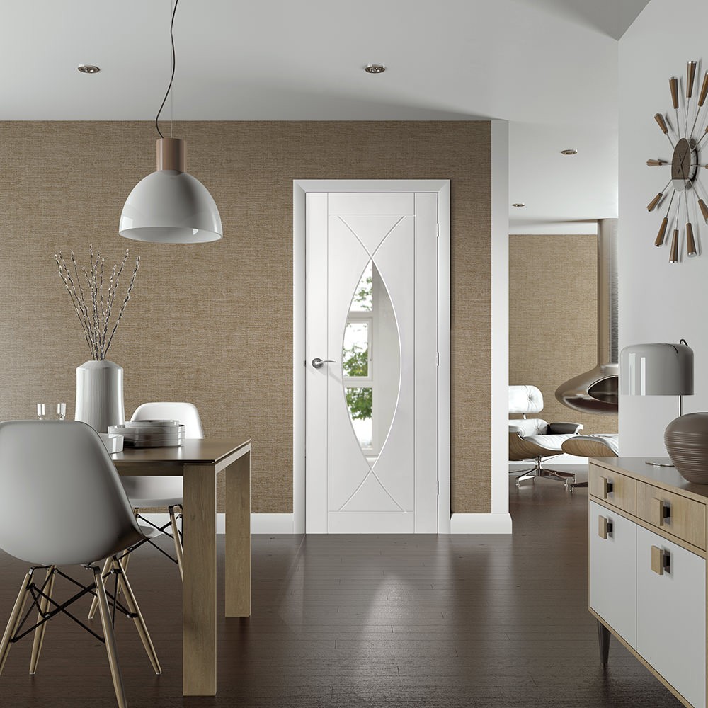 สีขาวมีความเอนกประสงค์ทำให้สามารถใช้งานประตูดังกล่าวเพื่อความเรียบง่ายเช่นเดียวกับสไตล์ทันสมัย