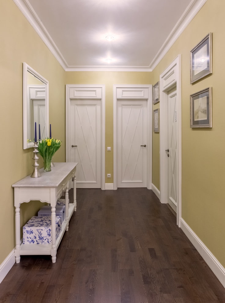 ทางเดินภายในสามารถขยายให้มองเห็นได้เพื่อให้ความสว่างถ้าคุณติดตั้งบานประตูสีขาว สิ่งนี้จะไม่เกินสถานการณ์โดยรวม