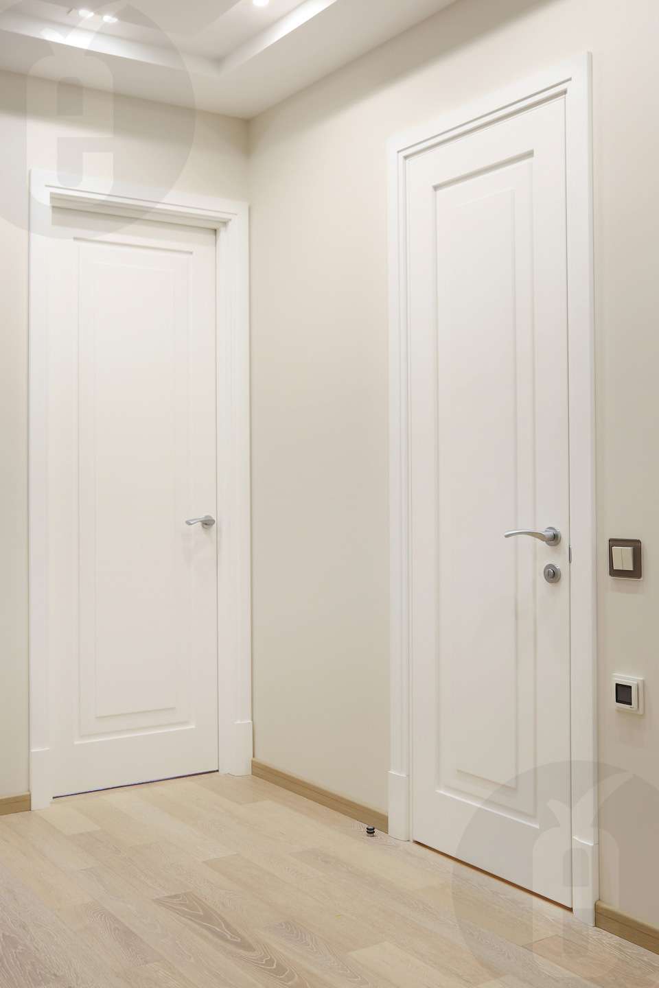 เพื่อเบี่ยงเบนความสนใจจากการเปิดประตูทางเข้าขอแนะนำให้สร้างการเปลี่ยนแปลงอย่างราบรื่นจากความขาวของประตูกับผนัง รายละเอียดทั้งสองนี้อาจแตกต่างกันเล็กน้อยในน้ำเสียง