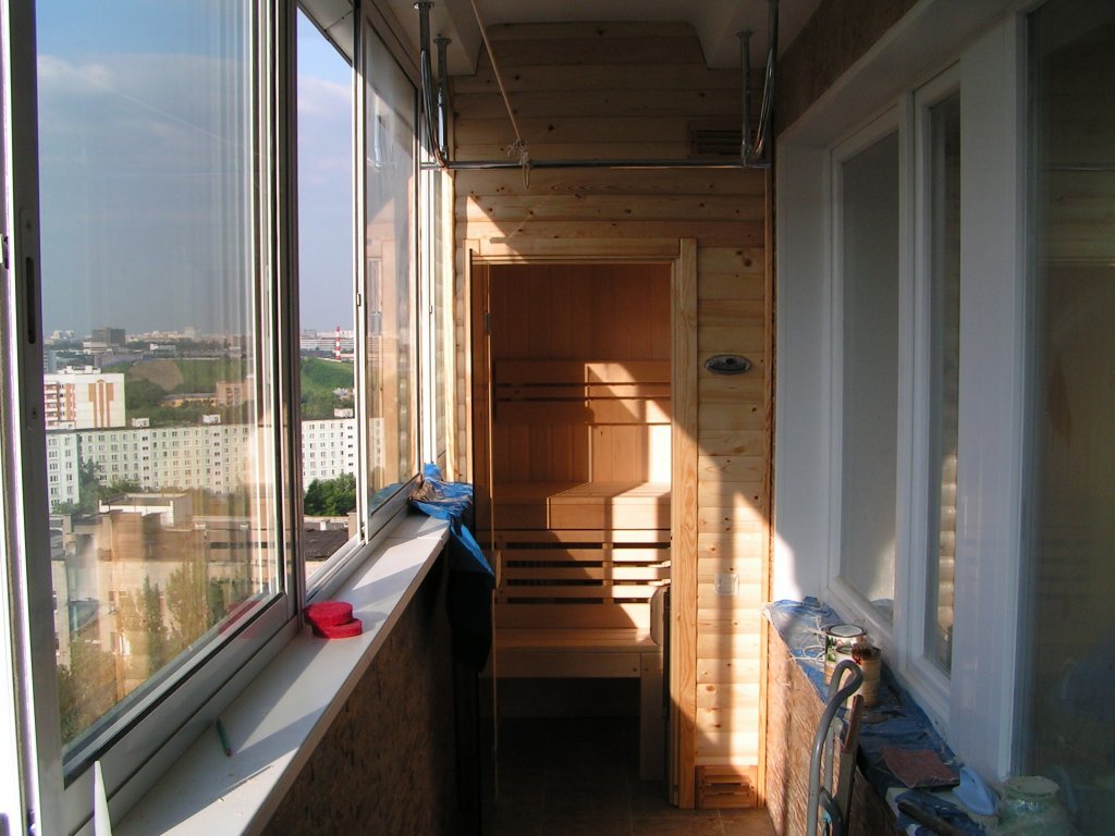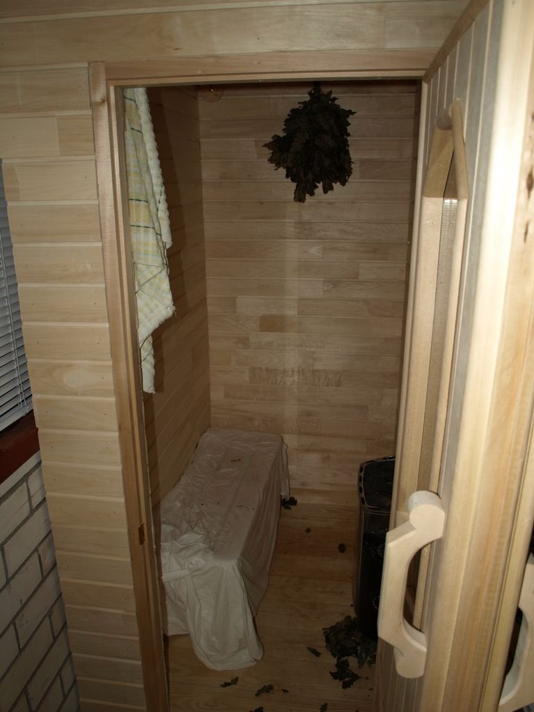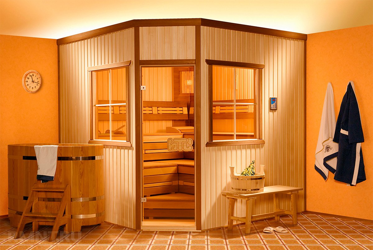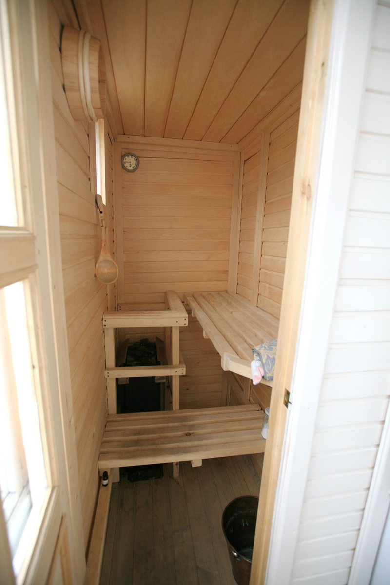 แม้แต่ซาวน่าที่เล็กที่สุดในอพาร์ทเมนท์ก็ทำออกมาตามกฎทั้งหมด มันถูกหุ้มด้วยไม้ที่ผ่านการอบด้วยความร้อนโดยเฉพาะอย่างยิ่งแอสเพนหรือต้นไม้ดอกเหลือง การตกแต่งเริ่มต้นจากเพดานหลังจากผนังเสร็จสิ้น ตะแกรงไม้วางอยู่บนพื้นเสมอเพื่อให้เท้าไม่ร้อน พื้นและผนังน้อยลงมักถูกตกแต่งด้วยกระเบื้องเซรามิกซึ่งทำให้การทำความสะอาดง่ายขึ้นมาก ประตูทำจากไม้ด้วยกระจกสีหรือฝ้า