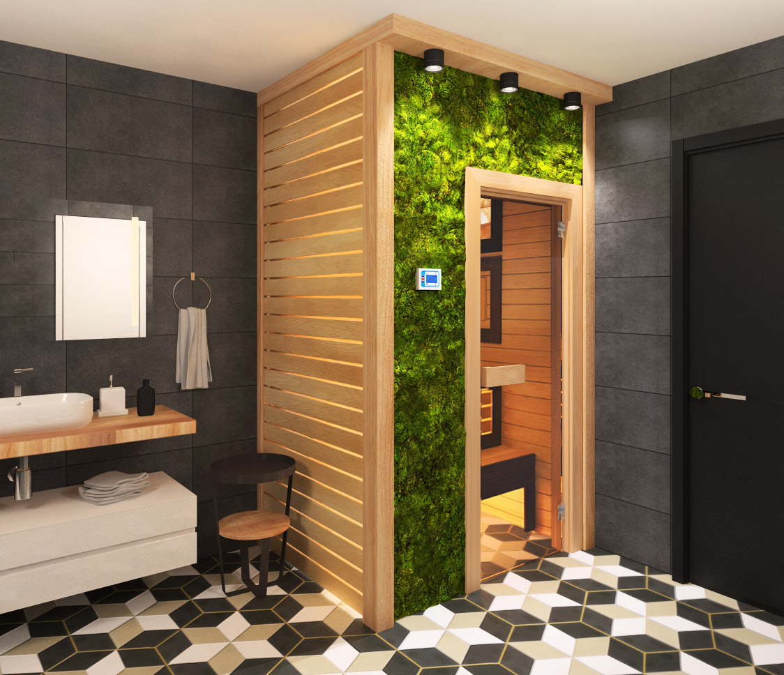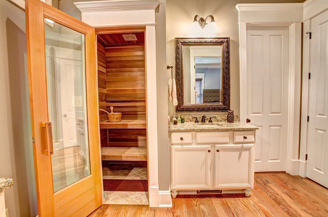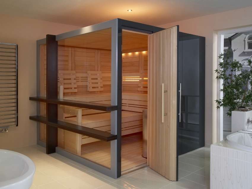 ตัวเลือกการออกแบบตกแต่งภายในสำหรับห้องที่มีห้องซาวน่าอ่างอาบน้ำ