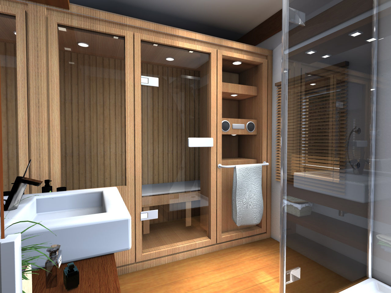 ในการตัดสินใจว่าจะใช้ห้องซาวน่าที่ไหนและที่ไหนให้ทำการวาดรูปอย่างละเอียดพร้อมมิติและตัวเลือกต่างๆสำหรับสถานที่