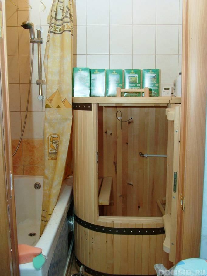 - ในอพาร์ตเมนต์แคบ ๆ คุณสามารถวางห้องอบไอน้ำขนาดเล็กมากได้เท่านั้น