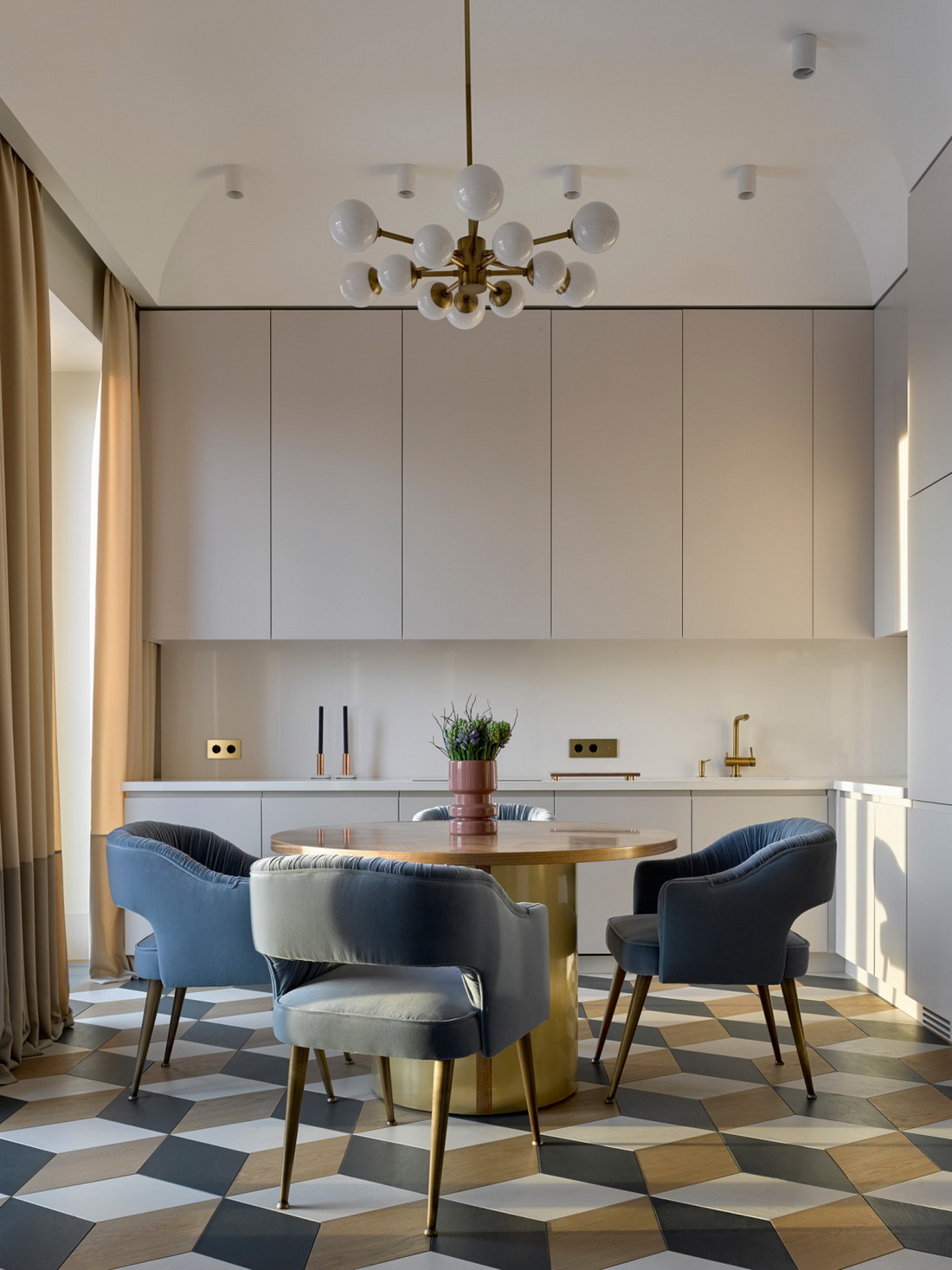 สำหรับคลาสสิกคุณต้องมีพื้นที่ขนาดใหญ่ไม่เช่นนั้นการตกแต่งภายในจะดูรกและล้าสมัยดังนั้นจึงพิจารณาแนวโน้มที่ทันสมัยให้ละเอียดยิ่งขึ้น