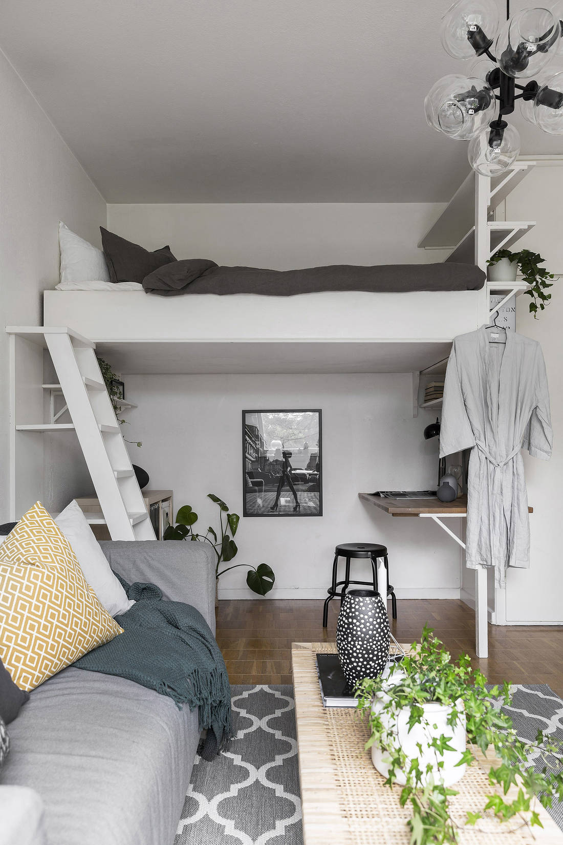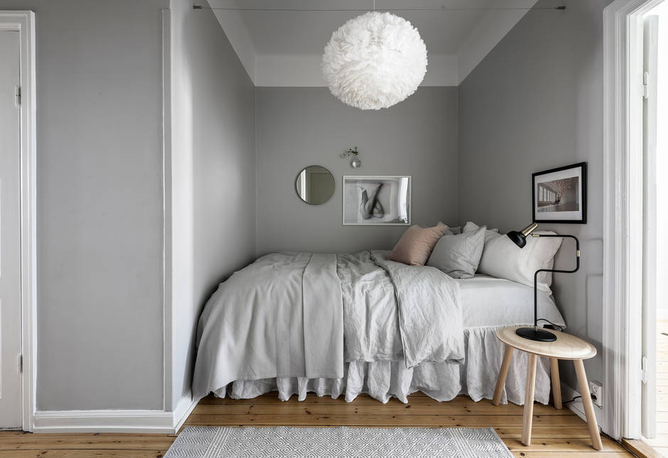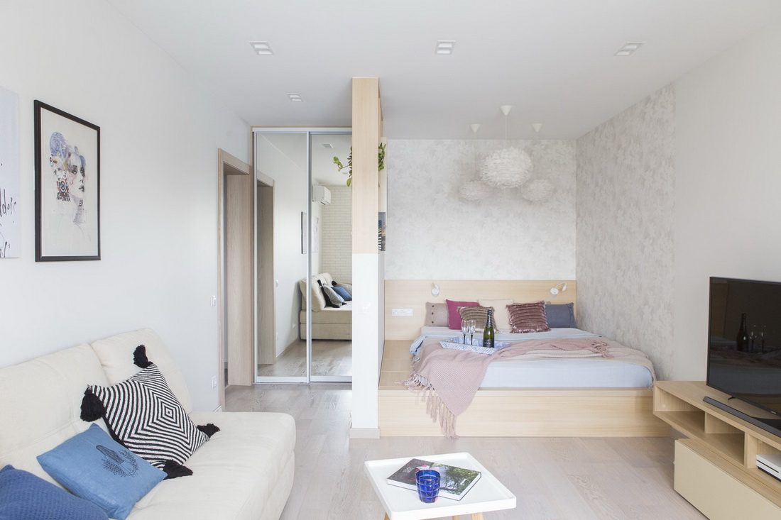 สไตล์สแกนดิเนเวียที่เบาและโปร่งสบายเหมาะสำหรับอพาร์ทเมนต์แบบหนึ่งห้องนอนหรือสตูดิโอขนาดเล็ก