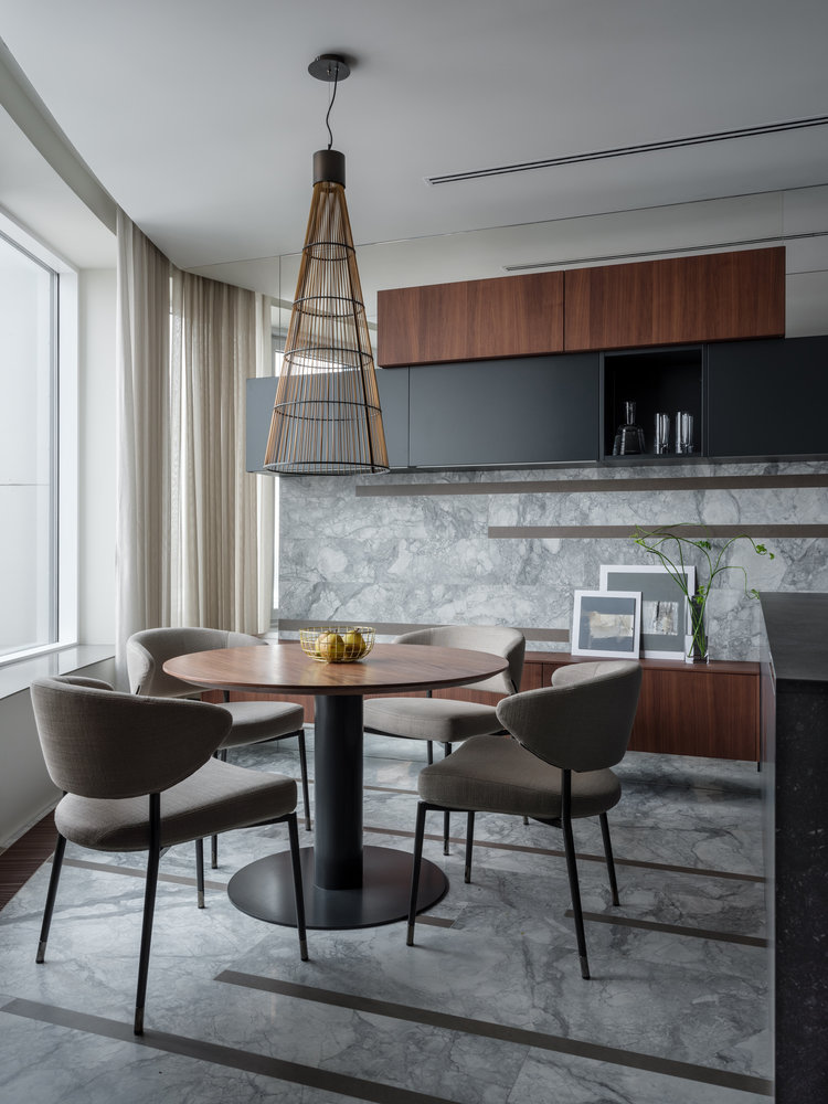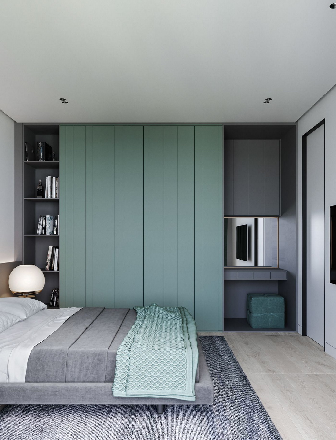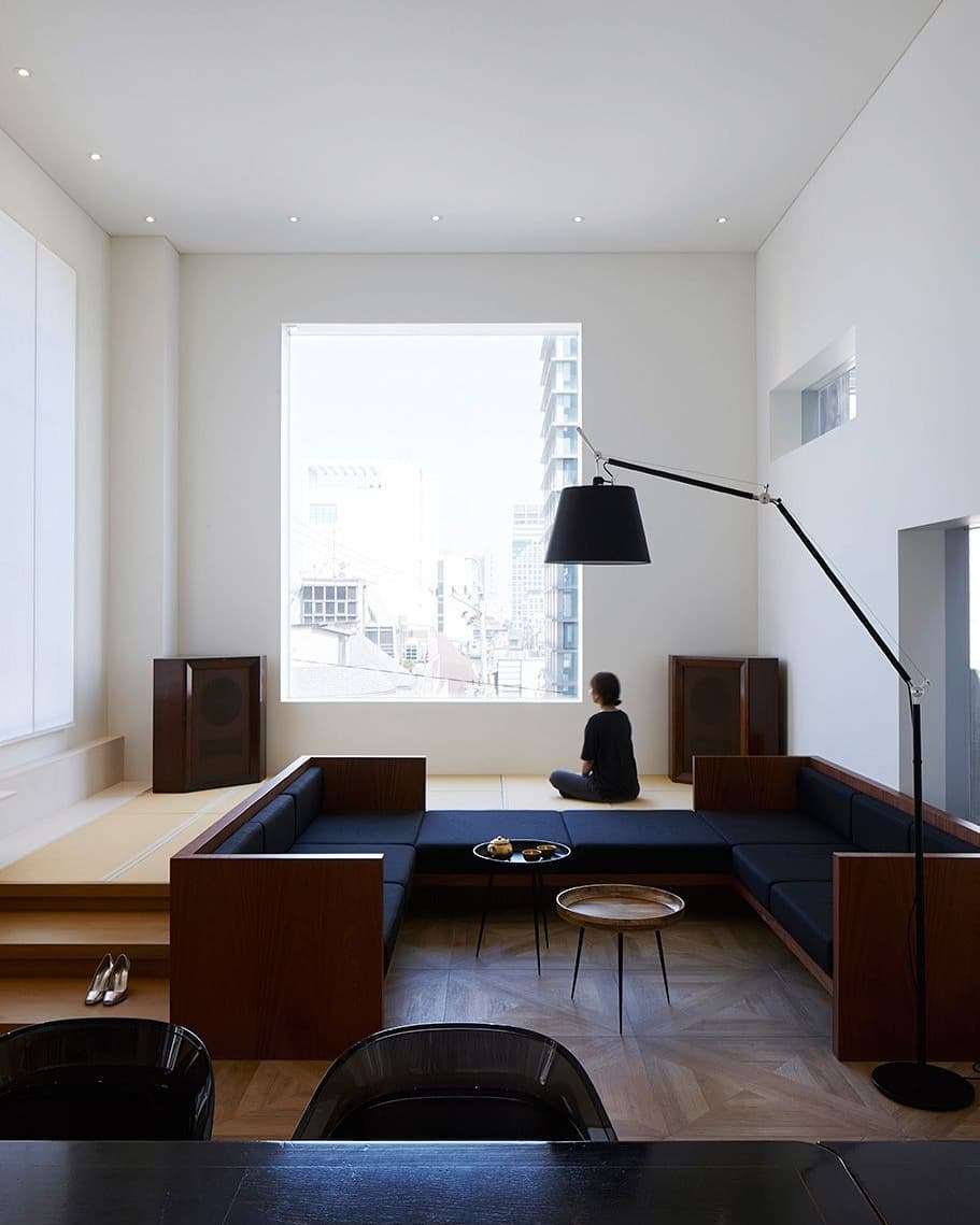 เฟอร์นิเจอร์พูดน้อยที่ตรงกับสีของผนังผสานกับพื้นหลังและช่วยเพิ่มการมองเห็นของห้อง