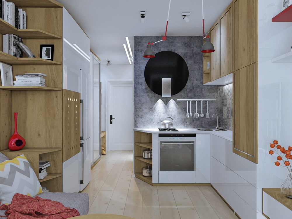 ในการออกแบบมันเป็นสิ่งสำคัญที่จะยึดมั่นในแนวคิด minimalist ซึ่งเป็นที่ประจักษ์ไม่เพียง แต่ในการเลือกการออกแบบห้องพัก แต่ยังเกี่ยวกับชีวิต อย่างน้อยสิ่งไม่มีรายละเอียดที่ไม่จำเป็นเป็นหลักการที่จะช่วยในการออกแบบตกแต่งภายในของอพาร์ทเมนต์ขนาดเล็ก
