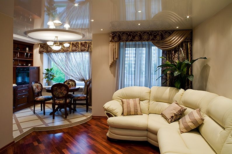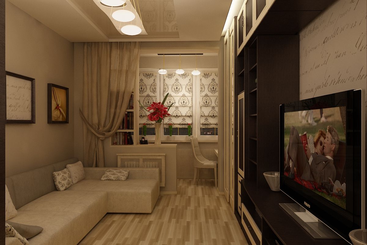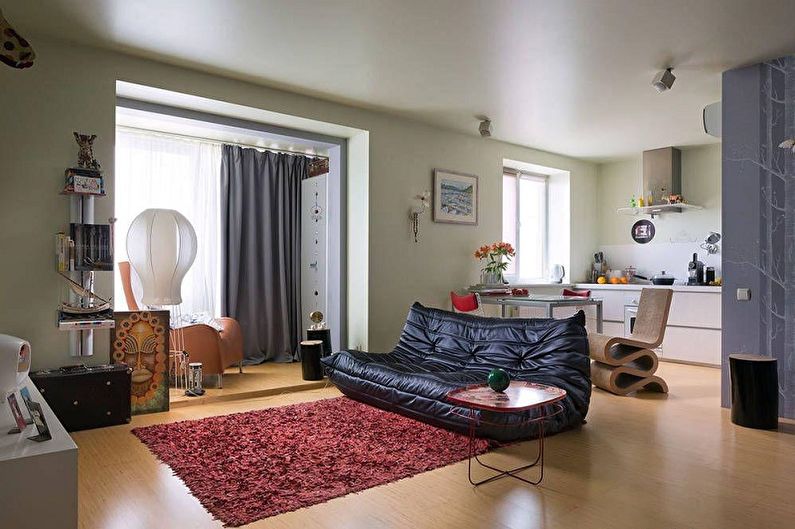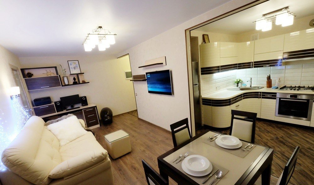 brezhnevka หนึ่งห้องหลังจากรวมห้องครัวกับห้องนั่งเล่น
