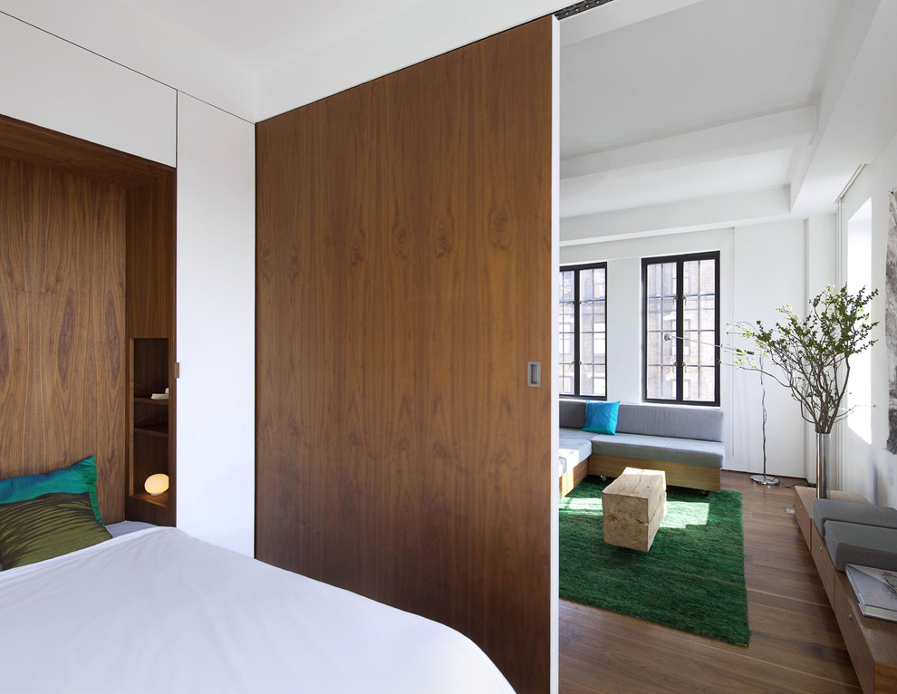 พื้นที่นอนหลับสามารถแยกออกจากกันโดยใช้พาร์ทิชันหน้าจอพับ