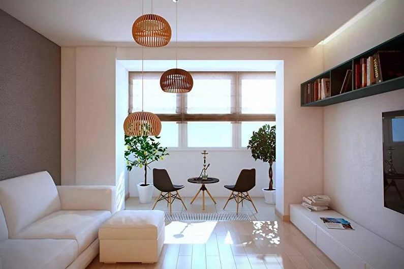 - คุณสามารถรื้อผนังระหว่างชานและห้องเพื่อเพิ่มพื้นที่ใช้สอย ในกรณีนี้คุณควรเลือกใช้ตัวเลือกการพัฒนาขื้นใหม่ที่เหมาะสมที่สุด ก่อนหน้านี้มีการกล่าวว่าการติดตั้งแบตเตอรี่บนระเบียงไม่สามารถใช้งานได้ซึ่งหมายความว่าการเปลี่ยนแปลงจะต้องมีการพิจารณาเพื่อให้ความเย็นจากระเบียงไม่ทำให้ห้องอึดอัดในอุณหภูมิ