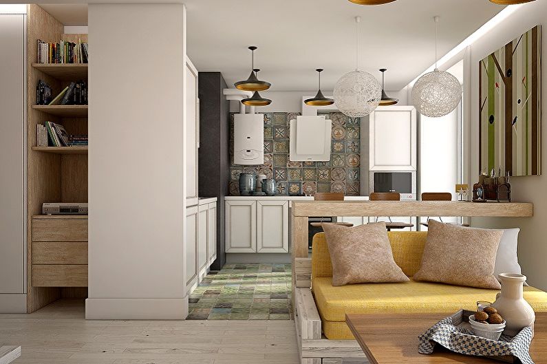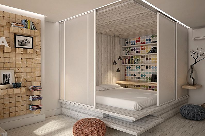 - แนวคิดการออกแบบและตกแต่งภายในสำหรับการเปลี่ยนแปลงอพาร์ทเมนต์แบบหนึ่งห้องเป็นแบบสองห้อง