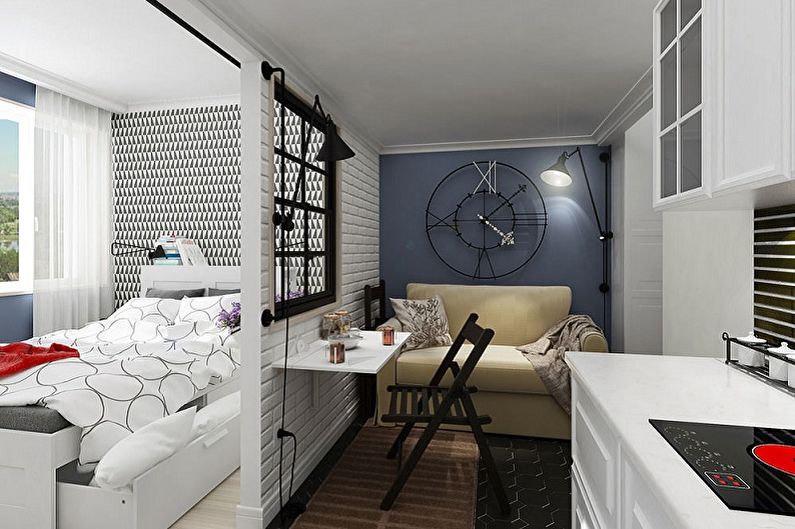 - การพัฒนาขื้นใหม่ของอพาร์ทเมนต์แบบหนึ่งห้อง - แนวคิดเกี่ยวกับภาพถ่าย