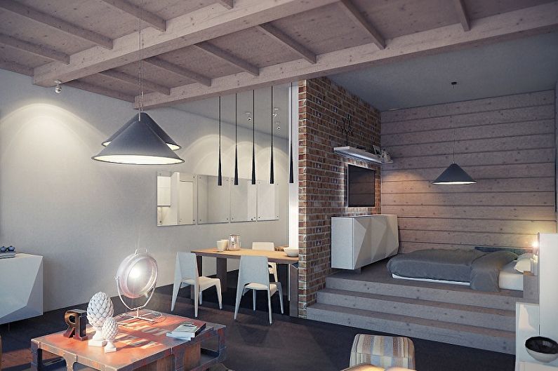 การตกแต่งภายในของสตูดิโอในสไตล์ทันสมัย