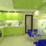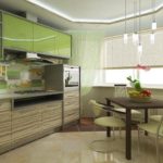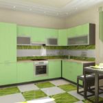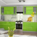 หนึ่งในเสียงที่ใช้มากที่สุดคือสีเขียวอ่อน มันอ่อนโยนสดกระตุ้นความรู้สึกสงบสุขและความสุข ห้องครัวสีเขียวอ่อนในภาพการตกแต่งภายในช่วยเพิ่มอารมณ์ Halftones ของช่วงนี้เหมาะสำหรับหลากหลายสไตล์ เพื่อเน้นข้อได้เปรียบทั้งหมดคุณจะต้องใส่ใจเป็นพิเศษกับรายละเอียดเล็ก ๆ ของการออกแบบ ผ้าม่านจะดีกว่าที่จะเลือกจากสิ่งทอแสงพื้นผิวที่เหมาะสม Tulle สีขาวเหมือนหิมะที่มีลายพิมพ์สีเขียวอ่อน ๆ ดูดี ผ้าม่านของสีน้ำตาล, สีเบจ, สีครีมจะทำ คุณสามารถใช้มู่ลี่ได้ แต่โปรดจำไว้ว่าพวกมันไม่เหมาะกับบางสไตล์ หากคุณยังต้องการที่จะหยุดความสนใจของคุณกับผ้าหรือผ้าม่านโรมันผลิตภัณฑ์ไม้ไผ่