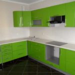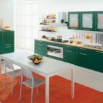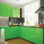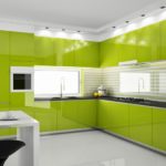 องค์ประกอบกลางและหลักคือเฟอร์นิเจอร์ ครัวสีมรกตมันวาวผสมกับสีขาวหรือสีดำเป็นตัวเลือกที่เก๋ไก๋ วัสดุที่ต้องการ ได้แก่ แก้วฟิล์มพีวีซีพลาสติก ในการตกแต่งภายในทุกอย่างควรมีความทันสมัยทันสมัยมวลขององค์ประกอบดึงกลไกการยก พื้นจำนวนมากพลาสเตอร์สำหรับตกแต่งเพดานที่ถูกแขวนโคมไฟดีไซน์ล้ำสมัยดูงดงาม มีอุปกรณ์ให้แสงสว่างจำนวนมากให้ใช้ - ห้องครัวควรเปิดไฟให้ท่วม