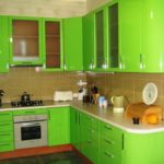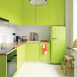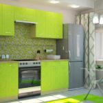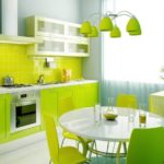 เหมาะสำหรับทุกสไตล์หญ้าสดใบอ่อนมีความเหมาะสม สิ่งนี้จะทำให้บรรยากาศน่าดึงดูด“ ฟื้น” แม้กระทั่งเฟอร์นิเจอร์ที่ง่ายที่สุดในห้องเล็ก ๆ ใช้ 2-3 สีในการตกแต่งอย่างระมัดระวังเลือกอุปกรณ์เสริมและวัสดุตกแต่งอย่าลืมว่าห้องครัวควรจะไม่เพียง แต่สวยงาม แต่ยังใช้งานได้สะดวกและใช้งานได้ทุกวัน