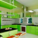จานสี Panton (ระบบจับคู่ Pantone) ประกอบด้วยสีเขียว 376 โทน ไม่ใช่เพื่ออะไรที่ถือว่าเป็นหนึ่งในความสะดวกสบายสดใหม่และน่ารื่นรมย์ที่จะรับรู้ สำหรับการตกแต่งภายในบ้านสีนี้เป็นแป้นยิงจรวดที่ยอดเยี่ยมและสามารถใช้เป็นโทนหลักหรือรองได้ การผสมผสานระหว่างสีน้ำเงินและสีเหลืองเป็นการรวมพลังที่ไม่ จำกัด และความเงียบสงบเข้าด้วยกัน ห้องครัวสีเขียวพร้อมเติมพลังงานภายในในตอนเช้าและเติมเต็มความสงบในตอนเย็น บรรยากาศของความสดใหม่มีผลในการต่อต้านความเครียดและตามฮวงจุ้ยเป็นสัญลักษณ์ของชีวิตและธรรมชาติที่เหมาะสำหรับการทำสมาธิ