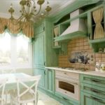 มันโดดเด่นด้วยการปรากฏตัวขององค์ประกอบขนาดใหญ่การรวมกันของเส้นที่ชัดเจนและเสร็จสิ้นสง่างามเสร็จสิ้นคุณภาพและการตกแต่งที่หลากหลาย เฟอร์นิเจอร์เหมาะที่จะซื้อจากอาเรย์ มันถูกทาสีด้วยเฉดสีเขียวฉ่ำ patina จะทำให้ครัวของคุณน่าสนใจ ถ้าเรากำลังพูดถึงซุ้มฟิล์มมันเป็นการดีกว่าที่จะเลือกเฉดสีที่บริสุทธิ์ ห้องครัวมีสไตล์สีเขียวและสีน้ำตาลสมบูรณ์แบบ