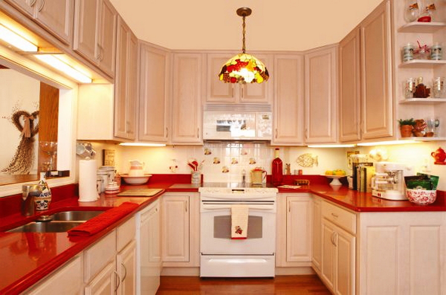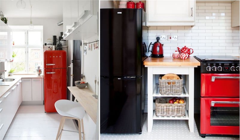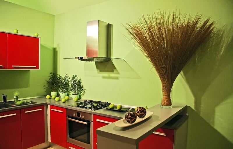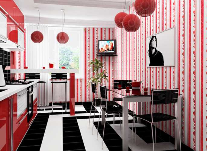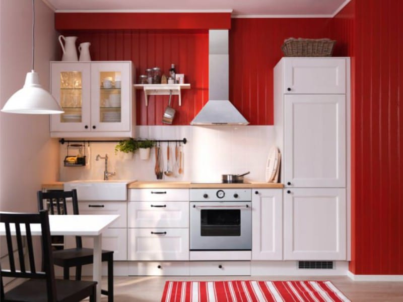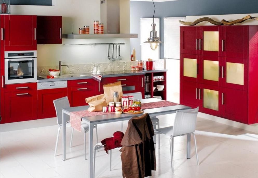 เพื่อให้ห้องครัวมีสีแดงดูกลมกลืนจะต้องใช้ร่วมกับเฉดสีอื่น