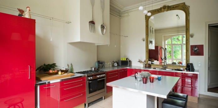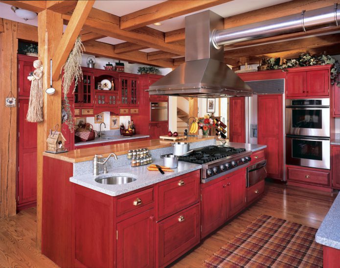 ห้องครัวสีแดงมักจะหมายถึงการออกแบบตกแต่งภายในที่คลาสสิก