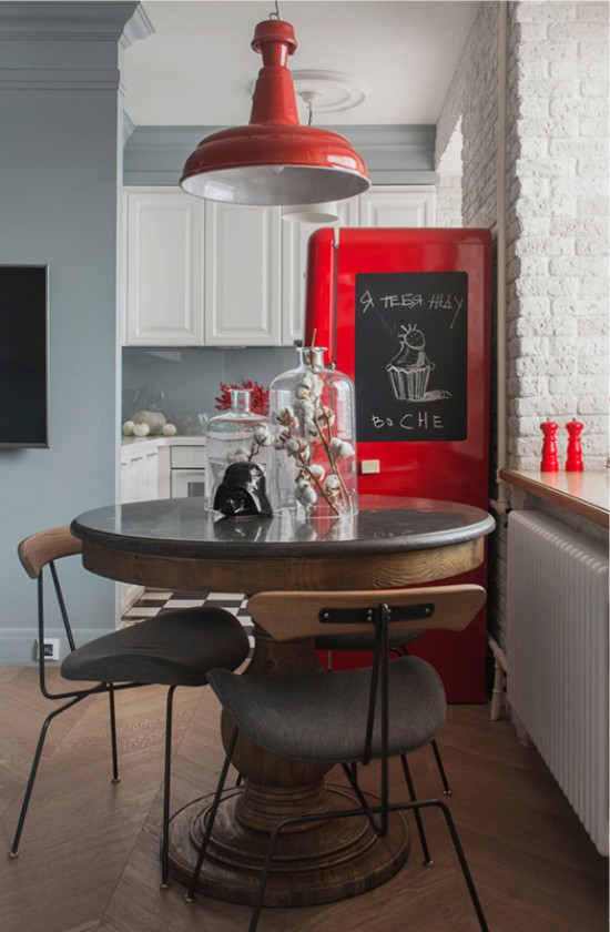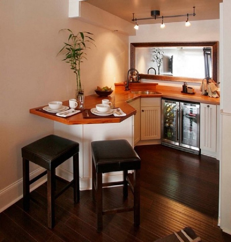 สำหรับผู้ที่มีไลฟ์สไตล์มือถือโต๊ะอาหารสามารถถูกแทนที่ด้วยเคาน์เตอร์บาร์หรือโต๊ะพับขนาดเล็ก
