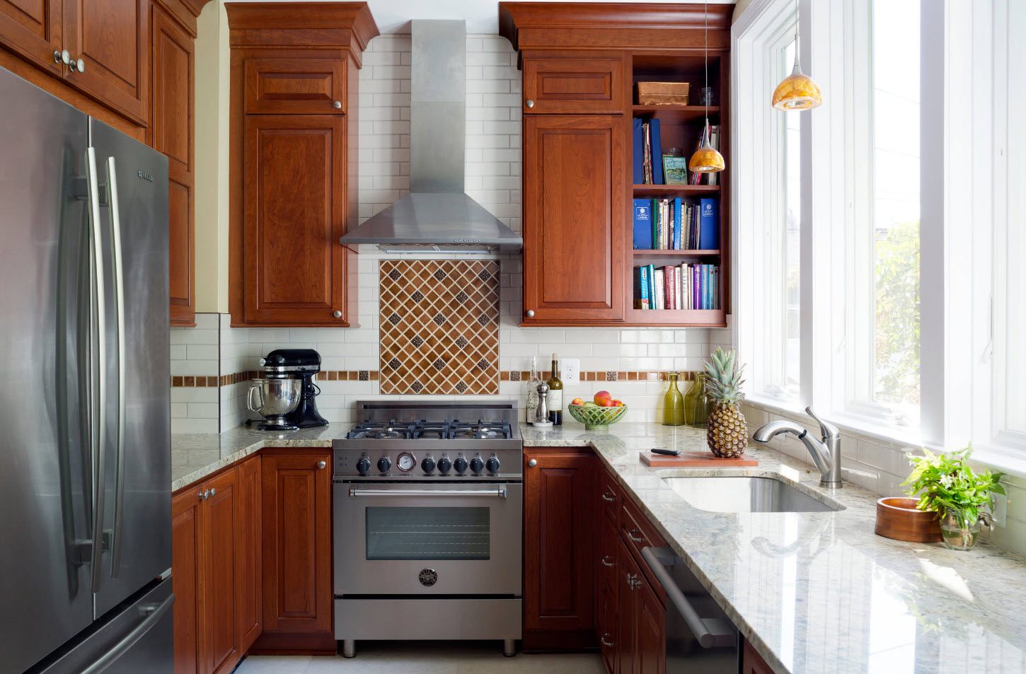 ห้องครัวขนาดเล็กสามารถกลายเป็นความสะดวกสบายการทำงานและทันสมัยมากถ้าคุณอย่างใกล้ชิดและเป็นมืออาชีพในการออกแบบพื้นที่ที่มีอยู่ เน้นหลักควรเลือกเครื่องใช้ในครัวเรือนเช่นเดียวกับการผลิตแต่ละชุดเฟอร์นิเจอร์ สีที่เลือกอย่างถูกต้องและการกระจายแสงจะขยายพื้นที่ออกทางสายตา