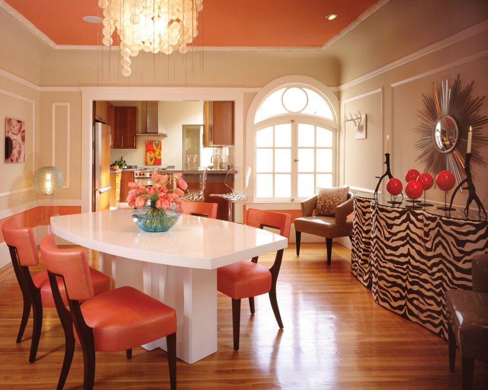 สีพีชสามารถเพิ่มได้ตามจุดเป็นชิ้นส่วนของเฟอร์นิเจอร์หรือของตกแต่ง