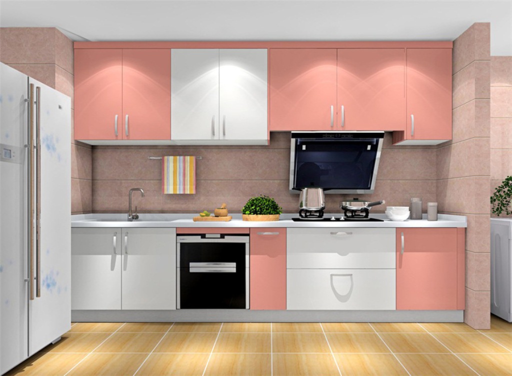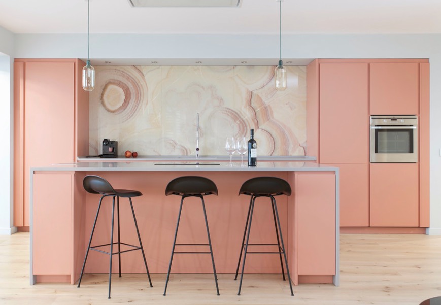 การผสมผสานระหว่างสีชมพูและพีชจะช่วยเพิ่มความสดชื่นและความเย็นให้กับห้องครัว